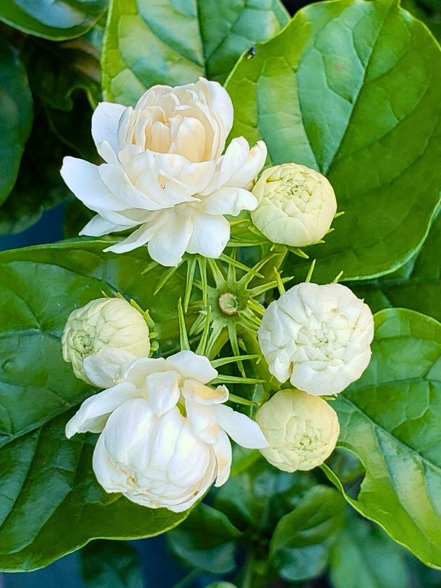 white-jasmine-flowers-on-green-leaves